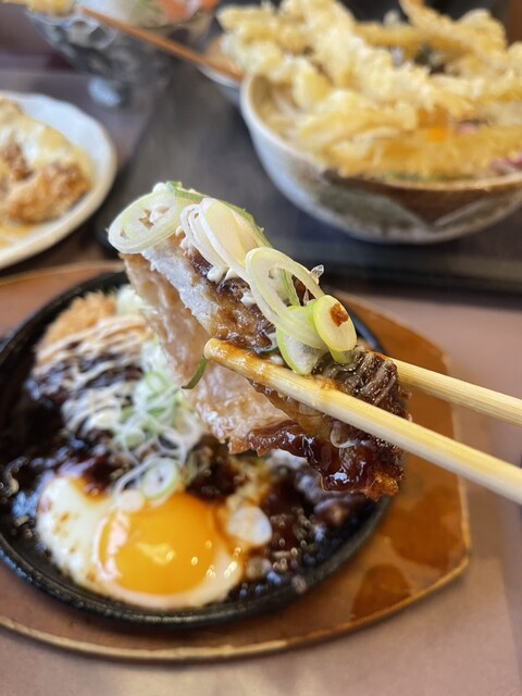 鉄板アツアツの味噌カツには目玉焼きが乗っており美味すぎ謙信じゃ。うむ。