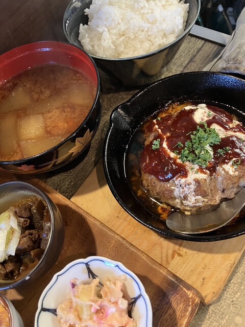鉄板ハンバーグ・具沢山味噌汁・ご飯