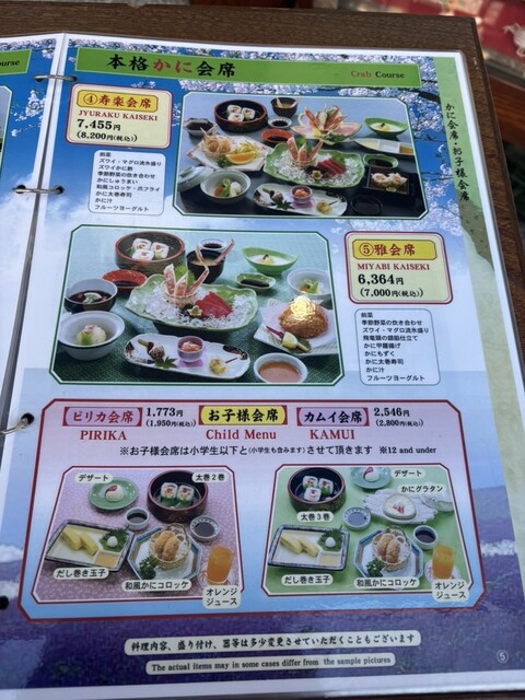 メニューを一部変更する事が出来るので、私と両親はカニグラタンをかにしゅうまい、娘はかに甲羅揚げをかにクリームコロッケに変更しました。