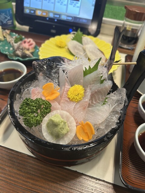 今回で3回目の来店。毎度お馴染みブリのお刺身は、何度食べても感動する。その他、アジのお刺身、石鯛のお刺身、のどぐろの塩焼、鮎の塩焼、サーモンの寿司、へしこの刺身を注文。どれも絶品。早瀬浦も飲みやすかった。