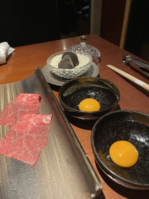 トリュフすき焼きのコースをいただきました。単品でロースとしろくまかき氷も追加。以前にも何度か来て美味しさに感動し、その後何件か別の高級焼肉にも行っては「美味しいけど…よろにくの方が…」となり戻ってきてはタイトルに書いたことを決意するというのをずっと繰り返しています。お肉の質がいいのはもちろんですがとにかくタレが美味しいです、失礼ですがこのタレかければスーパーの肉でも美味しくなるのではと思ってしまうほどに。しかし残念ながらこのタレは売ってないそうです!ぜひお店で味わってみてください。