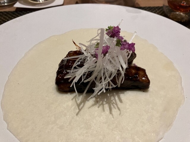 北京ダック風に肉を包んで食べるが、これは衝撃的に美味しい。おかわりが欲しいくらいだ(笑)