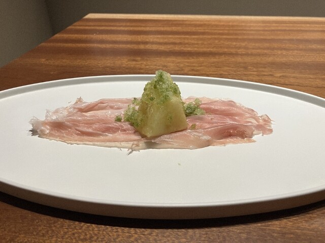 空は大きな雲に覆われ、昼間でも薄暗い日だった。新富町駅付近は、住宅街に囲まれ、静かでいて趣がある。レストランは建物の地下にあり、イタリアンでありながら和の雰囲気が特徴的だ。カウンター席からシェフの料理が直接眺められるのは気分を高揚させる。