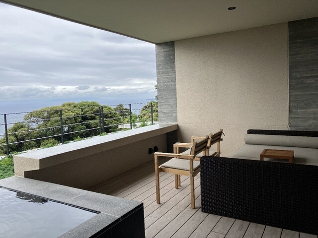 ホテル内の部屋はマンションの一室のような簡易的なものであるものの、それぞれの部屋にプライベート温泉が用意されているので、ゆったりと過ごせるのが実にいい。