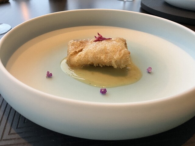 この日は残念ながら峯村シェフはいなかったのだが、彼のエッセンスは随所に散りばめられていると思う。とにかく魚が抜群に美味しく、正直な所、メインは肉料理ではなく、魚にして欲しかったくらいだ。素材の本来持つ旨味を最大限に活かしつつ、ソース、火入れなどの手入れを加えることで完成された皿は、パレットで絵の具の色が混ぜ合わさるように複雑な味わいを作りだし、満足感を膨らませる。