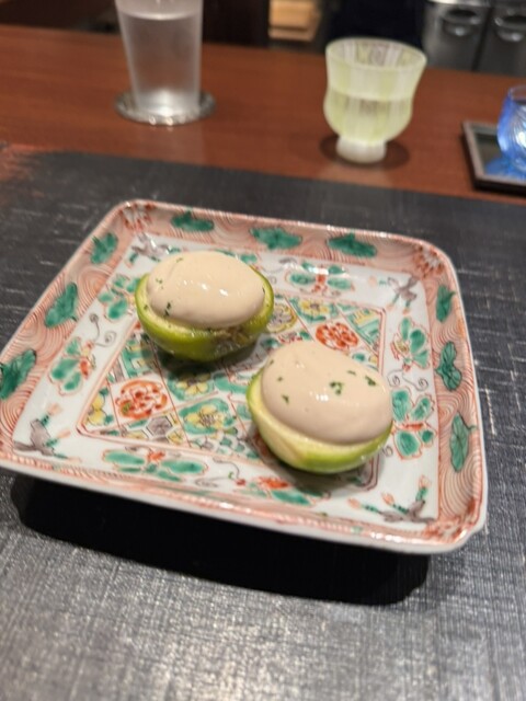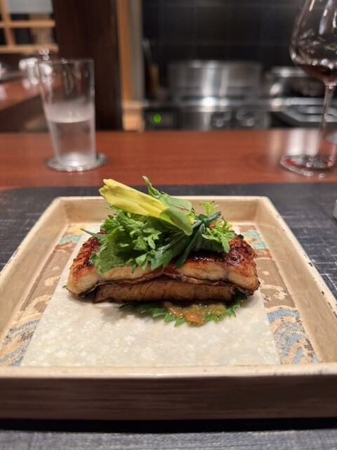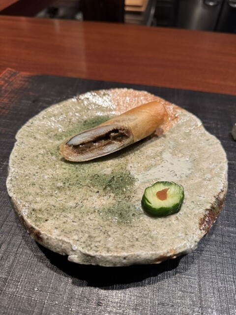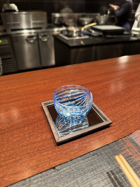 入口はほんとに控えめで、初見だったら通り過ぎるくらいの静かな佇まい。でも、青い暖簾がふわっとかかってて、その瞬間から空気感がちょっと違う。中に入るとカウンター9席だけの小さなお店で、古民家を改装した感じ。照明も抑えめで、話す声もちょっと小さくなるような、そんな空間。しかもスタートは18:00一斉開始。全員揃ってから始まるスタイルだから、なんというか、劇場っぽい。で、大将の金田さんなんだけど、これがまた面白い経歴の人で。元々は音響の専門学校に通ってたらしいんだけど、体調崩して料理の道に。そこから福岡の「メゾン・ド・ヨシダ」とか神戸の「北野ホテル」とか、かなりガチのフレンチの名店で修業して、さらにバンコクの「ガガン」、東京の「龍吟」と世界レベルの名店で腕を磨いた人。しかも、旅好きで、エベレストのベースキャンプとかアジアの海とか、旅先で出会った“青”にちなんでこの店名をつけたらしい。正直、料理の内容は難しいことはわからないけど、器とか盛りつけとかにすごいこだわりを感じるし、一皿一皿がちゃんと「物語」になってる感じがする。器も有田焼とか魯山人の作品まで出てきて、正直料理よりそっちに目を奪われる瞬間もあった(笑)。接客も静かで丁寧だし、余計な説明とかもなくて、程よい距離感。緊張感あるけど不快じゃない、むしろ“整ってる”感じ。なんていうか、飲食店っていうより、大将の旅の記録とか感性を一晩で共有させてもらってるような不思議な体験だった。また行けるかどうかわからないけど、なんか記憶にずっと残るタイプのお店。料理に詳しくなくても、ただそこにいるだけで感性が刺激される、そんな夜でした。