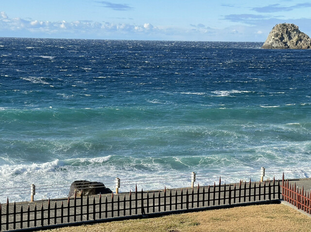 本当にとてつもない所にありますが、目前に広がる広大な青い海と、リビオ氏の作品、お料理、そして何より、こちらのご夫婦のおもてなしに感動。 また沈む夕陽がここまで綺麗だったとは…