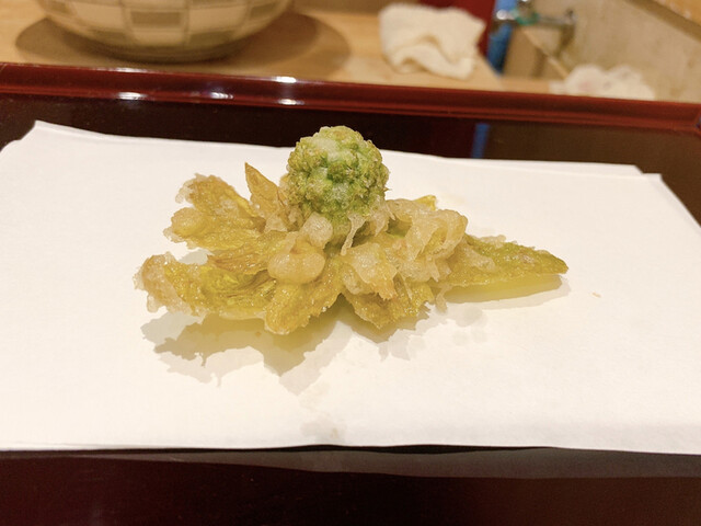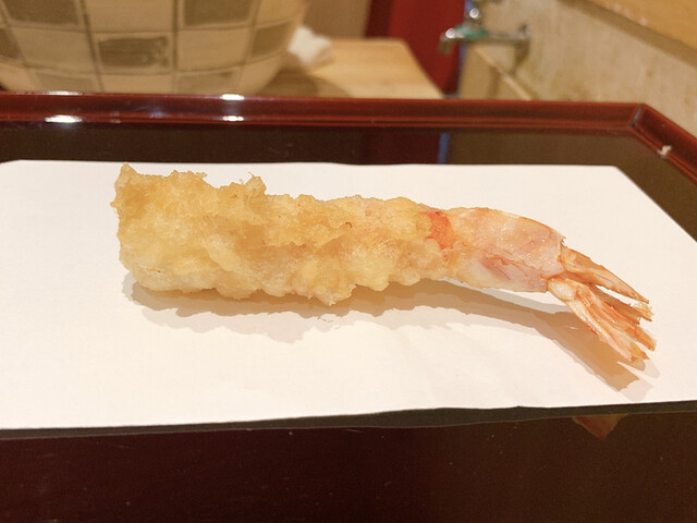 ③はレアに残して揚がっています。なので、熱が入って旨味が強くなった部分と生の甘みが味わえる天ぷらでした。海老は天ぷらの定番だと思いますが、火入れの加減や衣など天ぷらとしての質の高さを感じました。