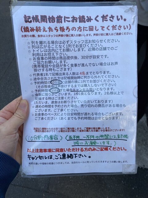 を予約して、つけ麺か普通のラーメンか聞かれ、つけ麺と伝え、10分ほど前に到着するようにとのことで、なお、両替も記帳時にのみです。