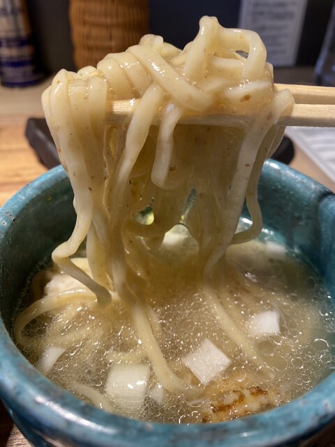 そして、次は、麺を昆布水に浸けて食べる、昆布水は北海道産羅臼昆布、北海道産がごめ昆布、イワシ煮干しも使用しているとのこと。
