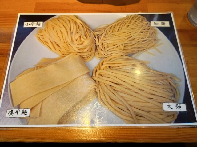 りきどうさんは、麺の種類は、小平麺、細麺、凄平麺、太麺と4種類もあります。