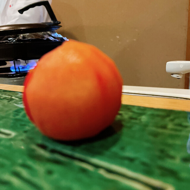 皮なし派と皮あり派論争があるとのことで、皮ありと皮なしを1つずつ。皮ありは糖分を強く感じるフレッシュなトマトだが、皮無しは硬めでスイカのような食感がするから不思議。