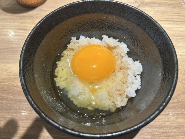 何気なくカウンターに目をやると、現金で追加注文可能の表示を見つけたので、ガーリックTKGを注文。