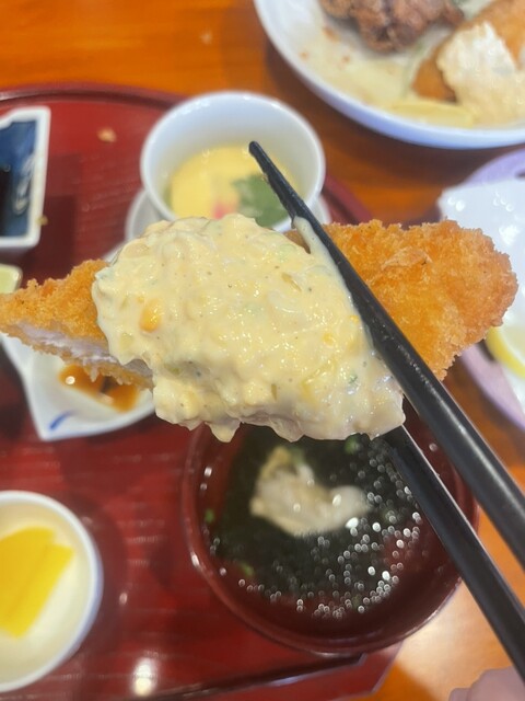 白身フライは鱈。初めからタルタルソースがかかっており、こちらも柔らかく身がホクホクしております!