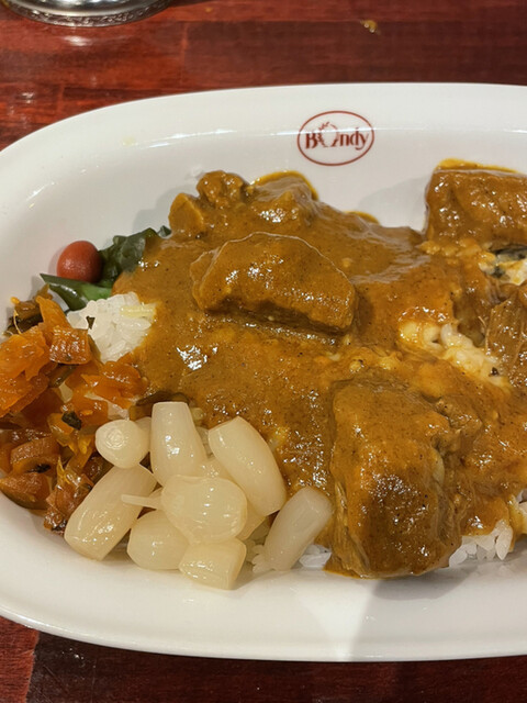 更に備え付けの、福神漬けとらっきょうをご飯に乗せ、ビーフカレーをご飯にかけて一口食べてみると甘いっ!って感じましたが、じわじわと辛さがやってきます。