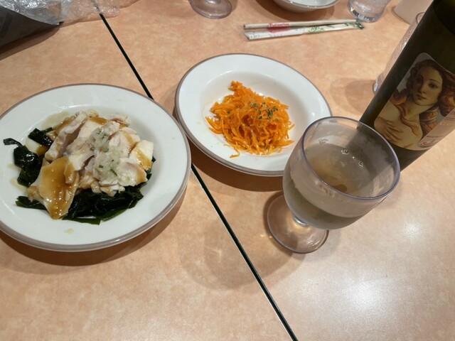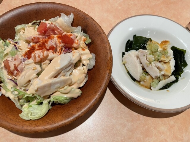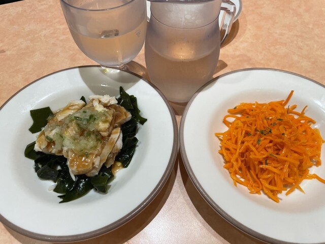 ニンジンのラペ、右がチキンとわかめのあえもの。チキンの量!!笑