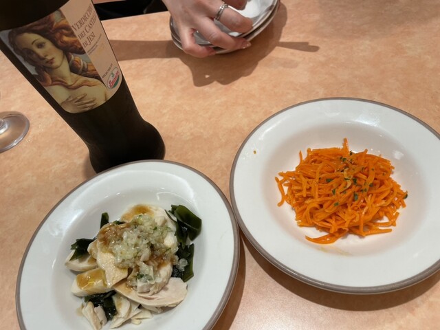 キャロットラペと、蒸し鶏の野菜ソースあえ、ベルデッキオ