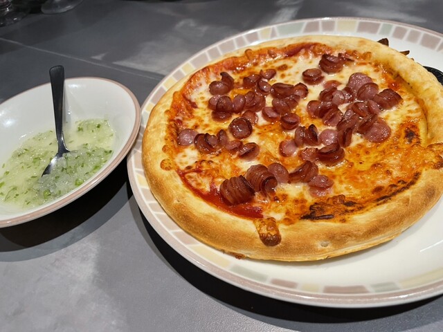 ソーセージピザ+野菜ソース