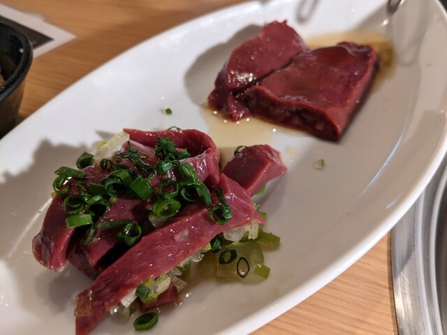 生で食べられそうな程めちゃめちゃ新鮮なレバーと炙りレバーがたまらない。