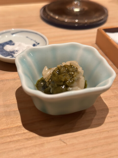 山葵、いぶりがっこマスカルポーネ、牛蒡、ガリ、お塩