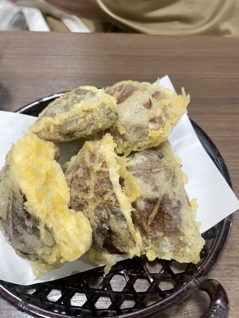 10分もかからない内にお蕎麦が到着、圧倒的なインパクト、おしんこもつけ具合が丁度いい椎茸の天ぷらは、大きいものを2つに切って揚げてあり食べやすく食べ応えあり、舞茸の天ぷらは、少し椎茸よ天ぷらに霞んでしまった印象ですが美味。