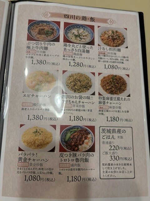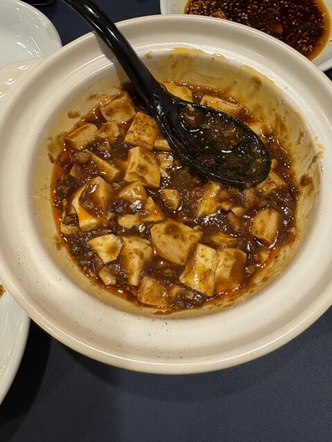 お店は、中華街にあってもおかしく無い店構えで期待大、着席しメニューを回覧見たことがない料理が多く一番めを引いた麻辣鳥、麻婆豆腐、黄金炒飯を注文、お店の人のアドバイス通りに鳥は、半身。
