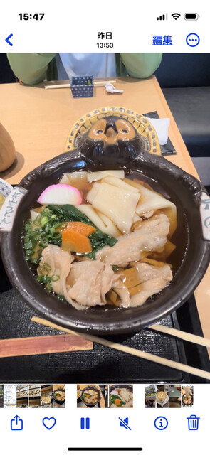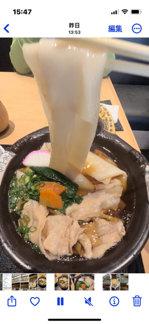 イメージ的にきしめんみたいなのかなーと思いきや うどんつるんとしてて食べやすくて超おいしースープが程よい塩梅でコクがありおいしー〜待った甲斐があるわーこれなら並んでも食べたいのわかる