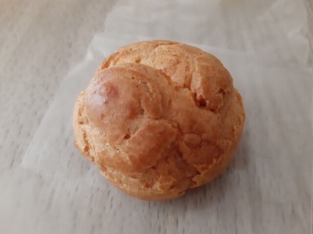 プチシューの中にはラズベリー。キャラメルクリームとキャラメリゼかと思ったらアーモンドヌガーだそうです。