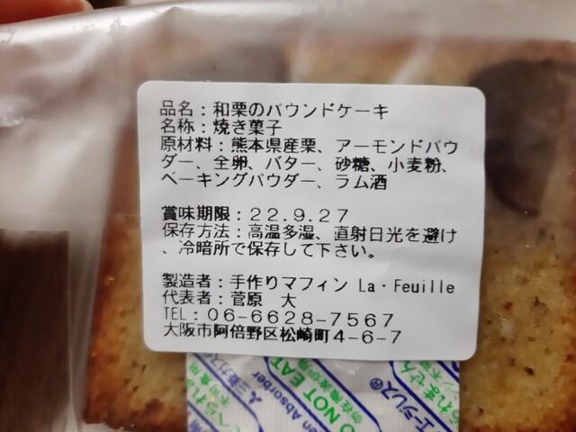 カスターニャ(イタリア栗のパウンドケーキ)220円