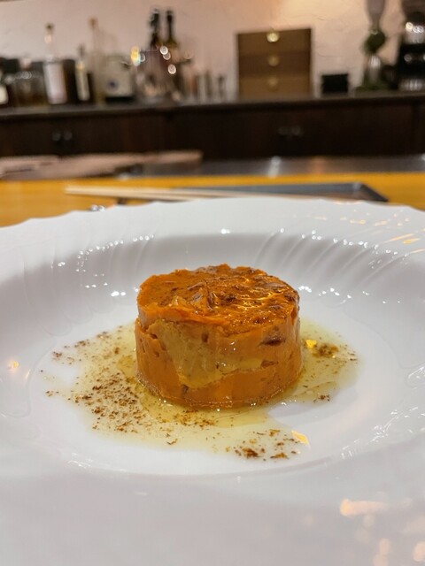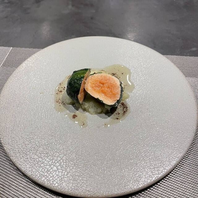 食材や調味料の共通点を見つけて、まるで違和感のない一皿を作り上げるというシェフのやり方を体現した一皿だった。乳化具合も完璧。