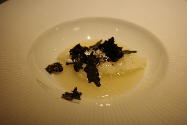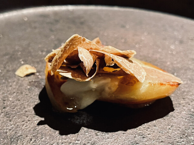 バターの香りが食欲をそそります…ゆっくり深く熟成して馬鈴薯の甘味が凄く…口に入れた時の細かな舌触りとホクホクの食感がたまりません…軽い口溶けの自家製バターと一绪に…格別の美味しさ…トリュフがたっぷりかけて…トリュフの香りとバターの塩気が絶妙なバランスで融合した…意外に思えるシンプルな素材を組み合わせですが全ての食材が不思議とマッチしています…独特の存在感を放っている…食べ進むほど夢中になる
