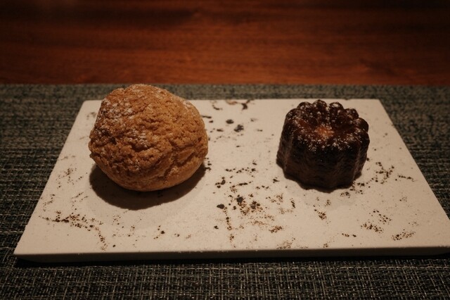 しっとり温かいカヌレ外側カリっと中はもっちり食感で…香ばしさと噛み応えがあります…一口食べると濃縮なコク…バターやバニラとララム酒の豊かな香りを効かせて…渾然一体となり…じんわりとした余韻が口の中にありました…幸せ