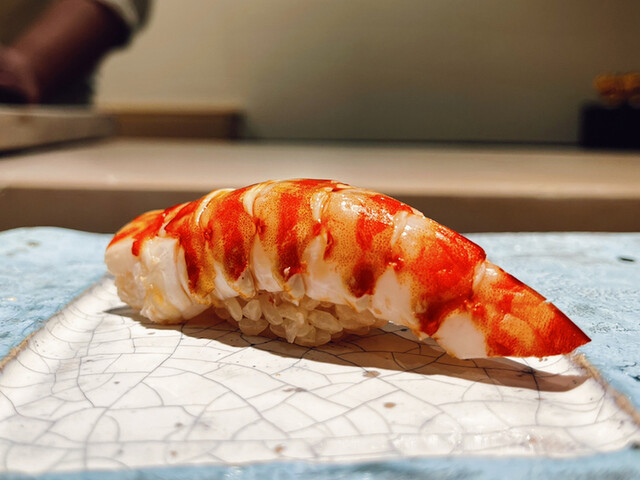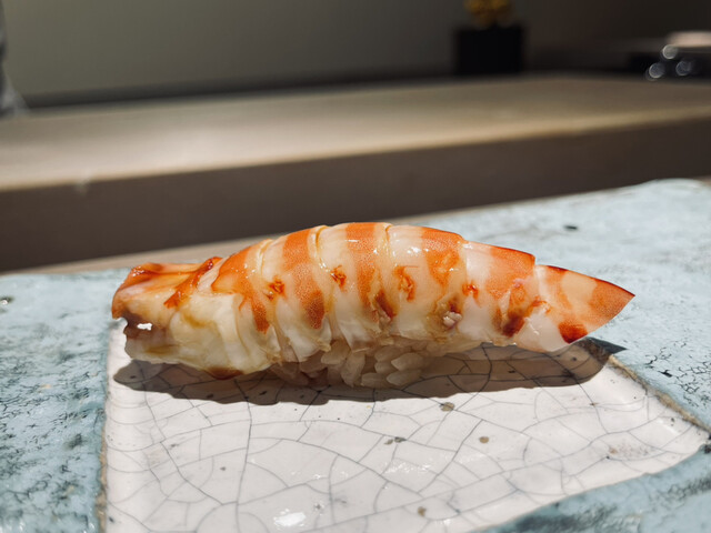 酢と塩の〆加減が絶妙…しっとりジューシー…ほんのり甘い縞海老おぼろが絶妙なアクセントと…シャリと見事な一体感を…甘酸っぱさが口の中いっぱいに広がります