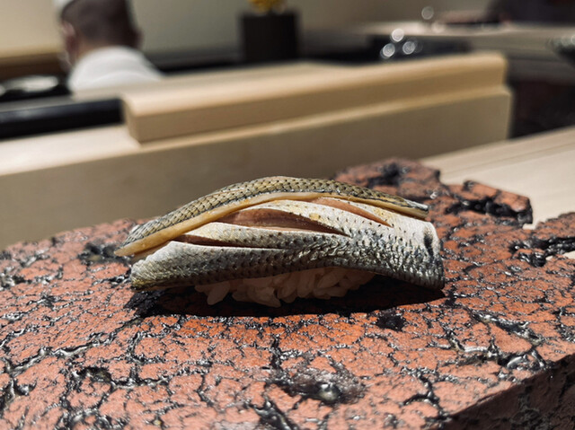 サクサクとした歯ごたえと旨味を持つ…シャリとの相性も良く…薬味と一緒に…サヨリの甘みが際立ちます