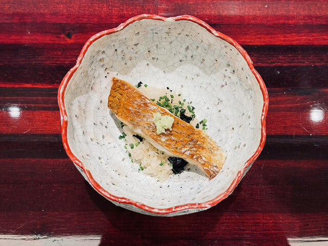 炭で軽く炙って…皮目の香ばしさがアクセント…綺麗な脂がとろけます…山葵醤油でと一緒に絡めて食べる…旨味がギュッと凝縮してさっぱり