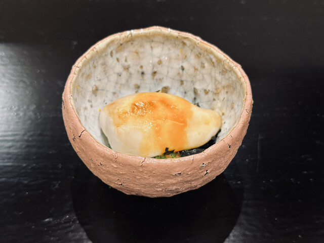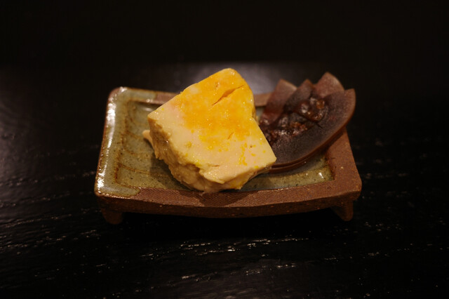 茶碗蒸しに海鼠腸の塩辛…自家製唐墨をかけて…滑らかな茶碗蒸しと塩気のある海鼠腸が相性良く…唐墨の風味がする海鼠腸が絶妙に口の中でとけあって…圧倒的な美味しさ