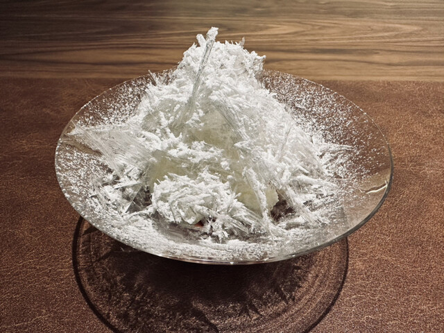洋梨芳醇な香り、栗優しいの甘み、柚子特有の苦味、レモン甘酸っぱい、メレンゲザクザク食感、この5つの食材とそれぞれの味が絶妙なバランスで織り成す、天使の羽のように美しく透き通った飴細工は芸術級存在、食べてみるとあら不思議相性ぴったり 、味だけではなく芸術作品を見る感覚で視覚からも楽しめますq