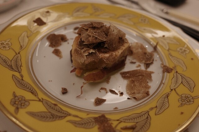 冷たいフランス産フォアグラと暖かなサツマイモの温暖の差!この上に白トリュフをたっぷりかけて怒涛の旨味の相乗効果で悶絶