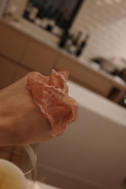 イタリア手動製のスライサーで一枚一枚丁寧に極薄くスライスしているのだそう!生ハムの種類によって厚みも違うそうですよ!何種類かいただいたがどれも驚愕、実に素晴らしい!手で生ハムの温もりを感じ、鼻で抜ける香りを楽しみ、舌で軽い口溶け繊細な味わいを、心で感動の気持ちを