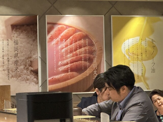 明太子にちょっと堅い異物が入っていたのが、残念でしたが、熱々天ぷらを頂き、お腹いっぱいで大満足です。