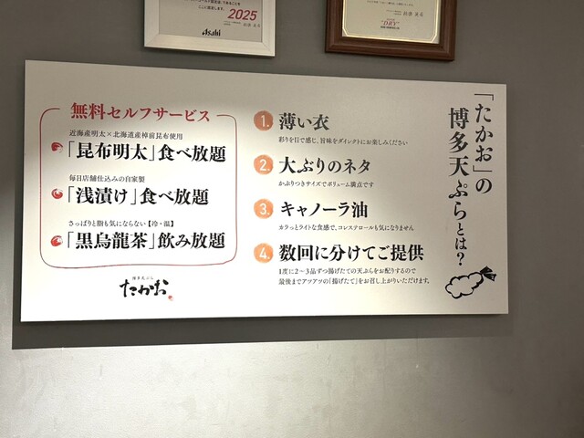 キャノーラ油で揚げてあるので、ヘルシーな天ぷら、しかも衣が薄め、このお値段で嬉しい接客です。