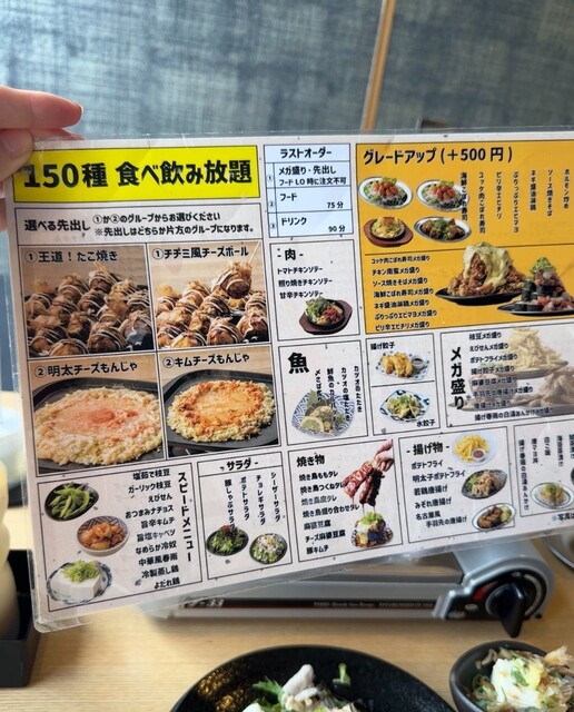 120種類のたこ焼きやもんじゃが選べるコースや、焼き鳥や揚げ物、餃子までそろったプラン、さらにはSNS映えするチーズ麻婆豆腐など150種類の食べ飲み放題まであって、とにかくメニューが豊富。