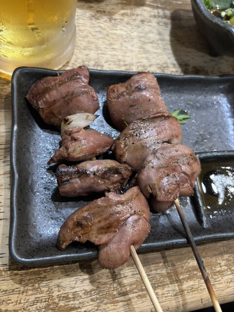 レバー串焼き、焼き方レアを選べます。そちらがオススメ。