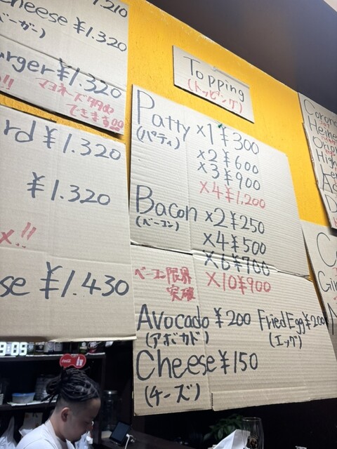 ベーコンチーズバーガー。パティプラスI枚、ベーコンプラス2枚