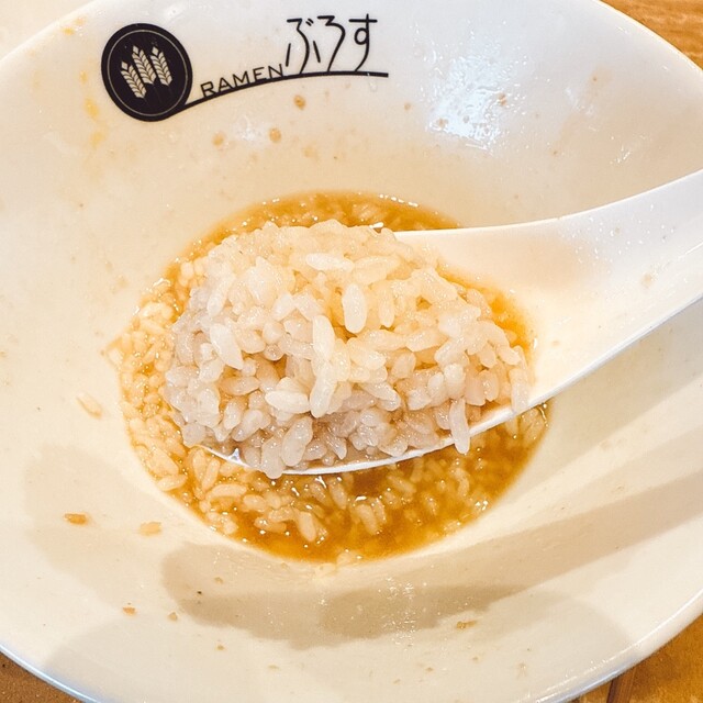 タレは醤油ベースで、とにかく脂がねっとりとして美味い。麺によく絡みます。ぶろすの麺は基本的に上品なイメージがありますが、友達曰く「良い意味で下品」です。油そばならではのジャンキーな感じがたまりません。