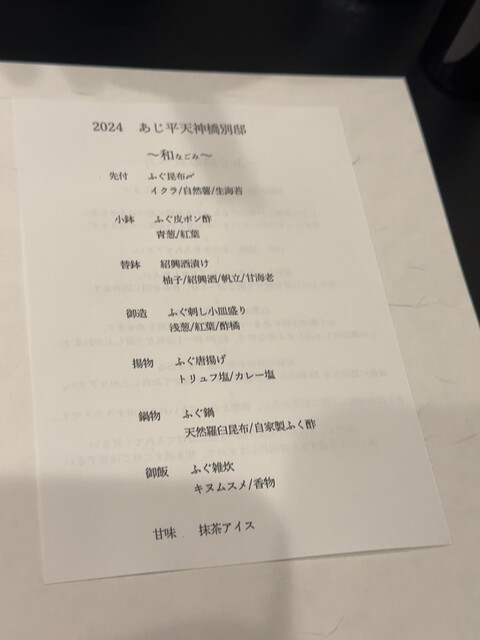 福島 あじ平 天神橋 別邸は福島あじ平の別店
