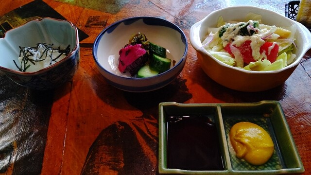 厚めの油揚げ、ぬか漬けにシラスおろし。