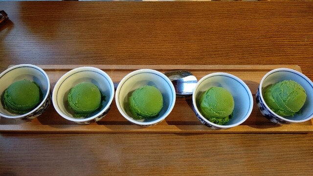「日本茶ジェラート5点盛り」840円 と