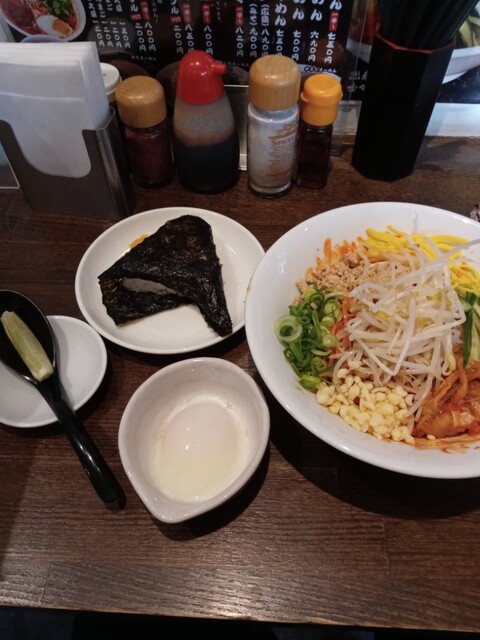 「汁なしランチ(汁なしがらく30倍+白むすび1個)(税込900円)」「温泉たまご(税込130円)」を注文。