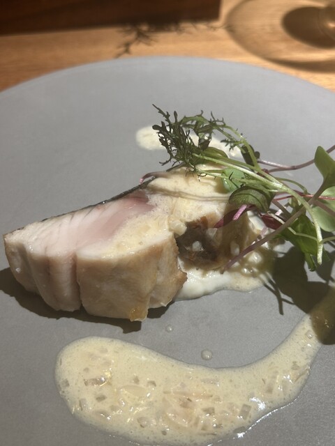 4品目、さわらの白ワインを使ったソースとカリフラワー。これまた美味しい。生焼けの感じですが、焼き過ぎないからこそ鰆の旨みを感じたのかも知れません。ソースとの相性抜群。